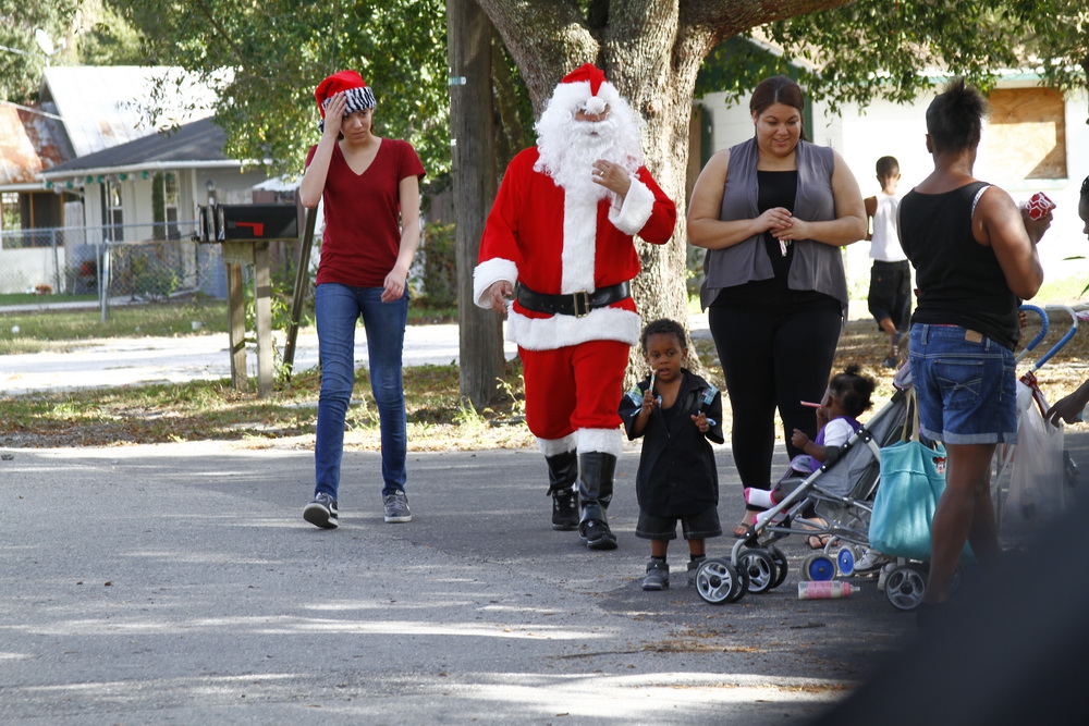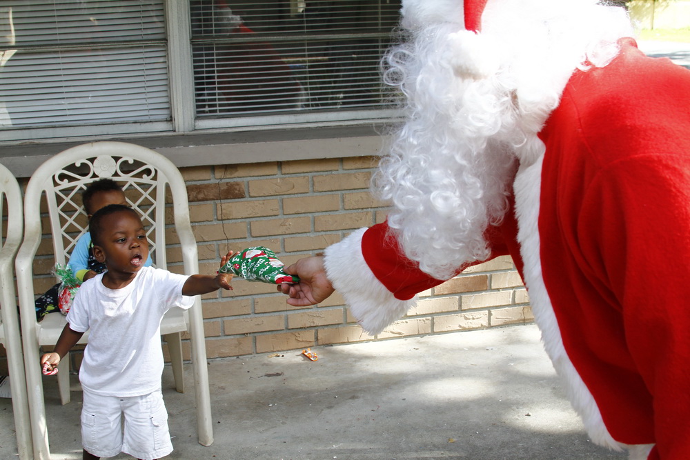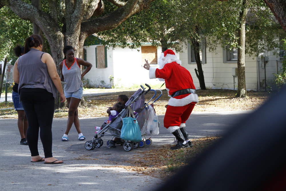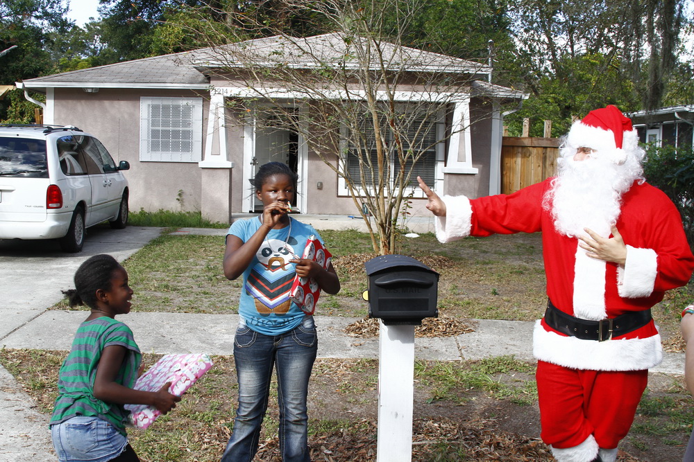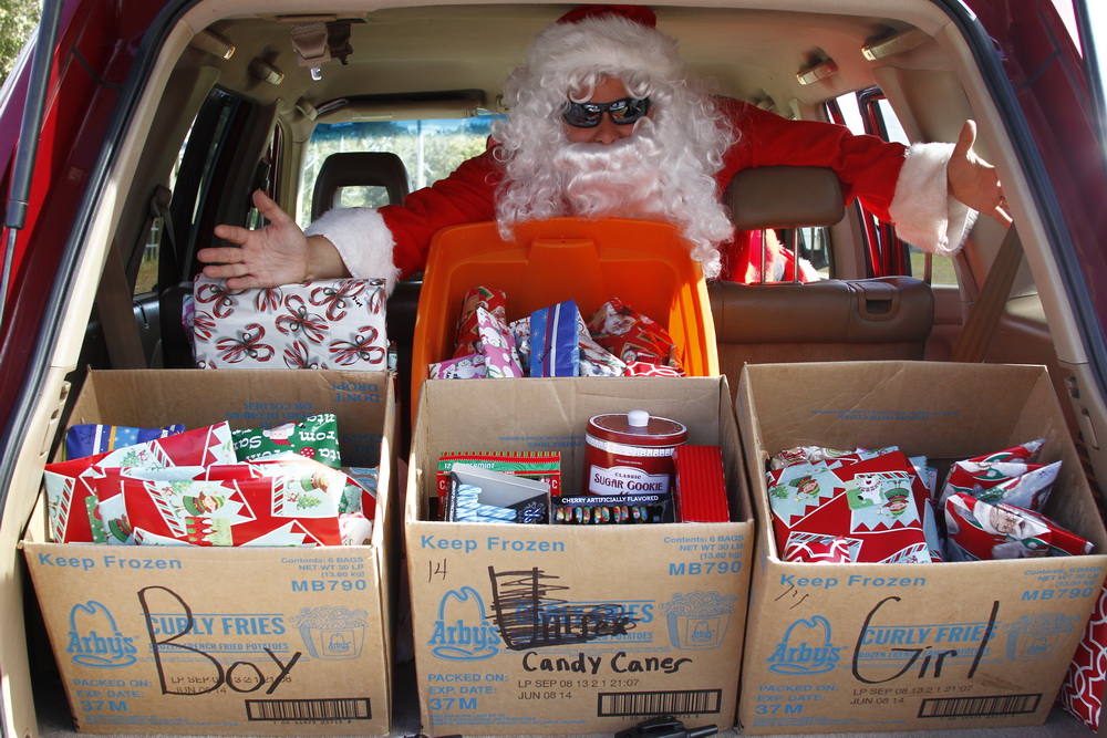 Basically we gather money from family and friends throughout the year and buy small toys for children. I then dress up as Santana Claus and load up the family and boxes of toys and drive around neighborhoods where kids live who could use a little Christmas spirit and fun.
