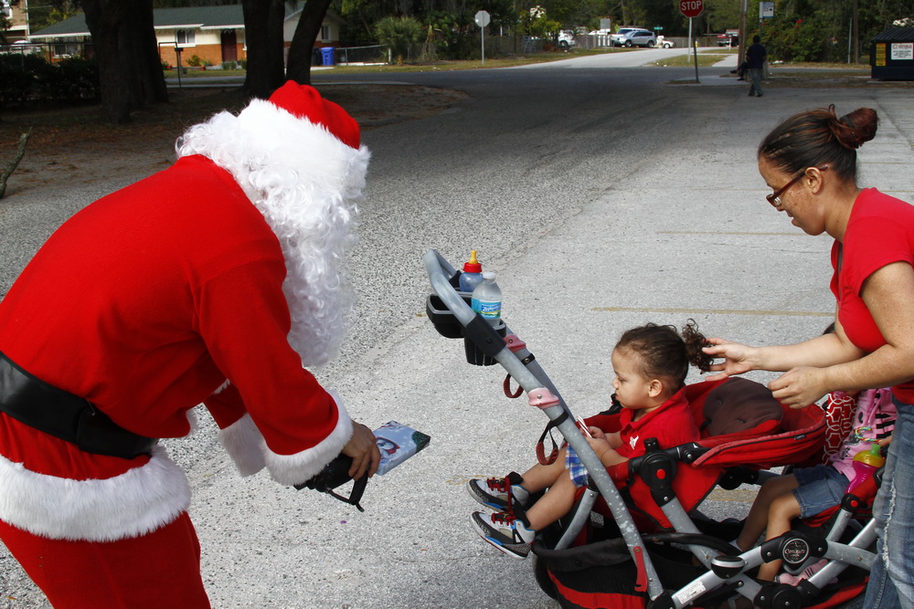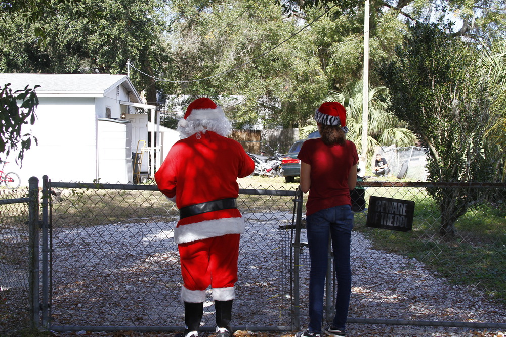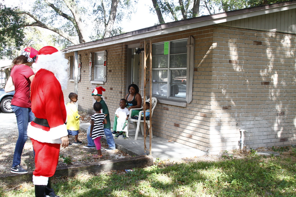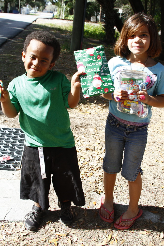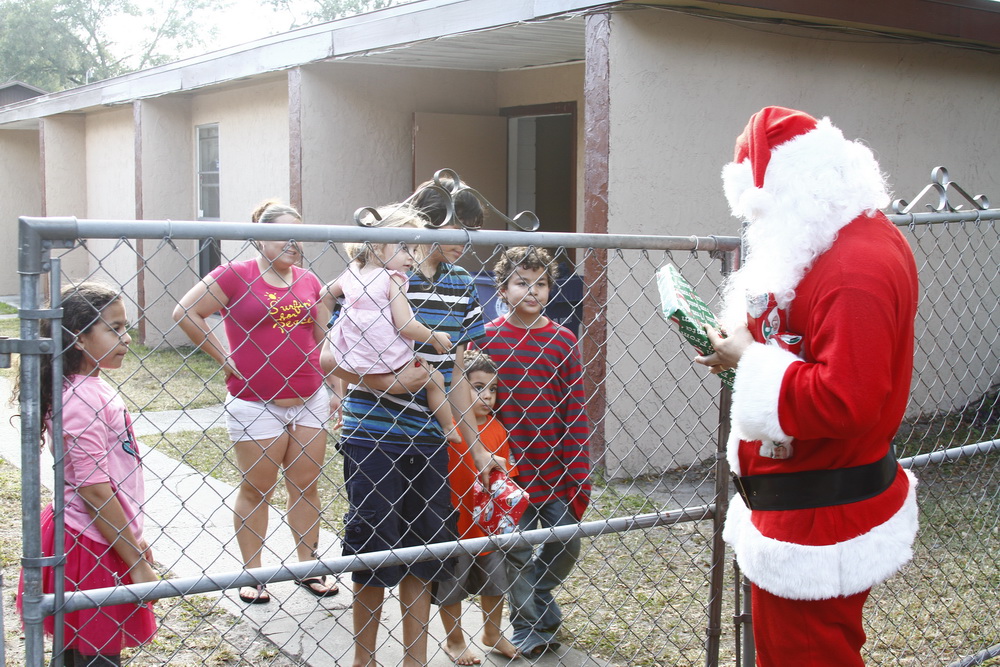Basically we gather money from family and friends throughout the year and buy small toys for children. I then dress up as Santana Claus and load up the family and boxes of toys and drive around neighborhoods where kids live who could use a little Christmas spirit and fun.