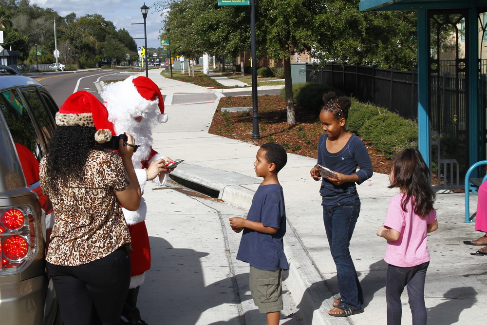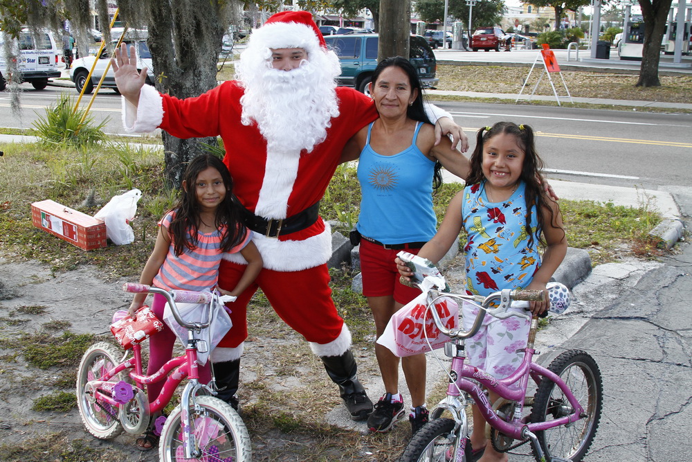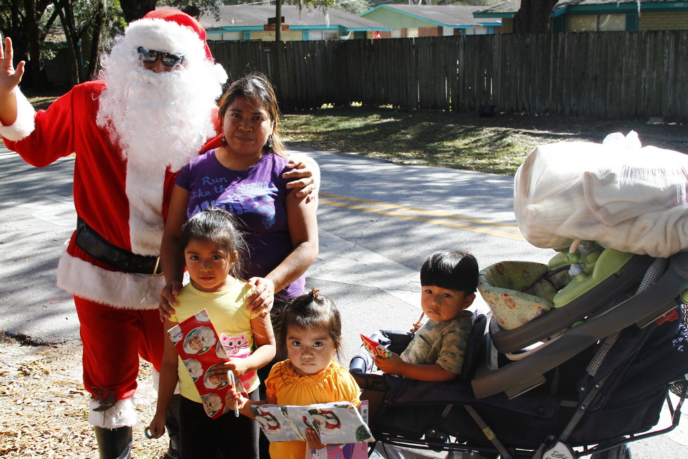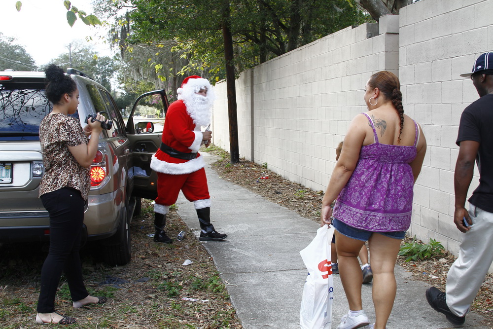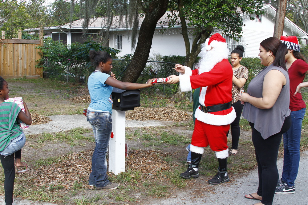 About 4 years ago we decided to buy some toys on clearance, wrap them and drive around the old neighborhood and pass them out. After two years of doing that I decided to put on a Santa costume and drive around handing out toys, then Santana Claus was born!