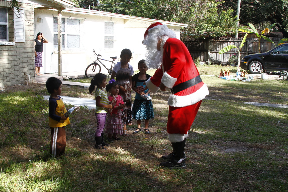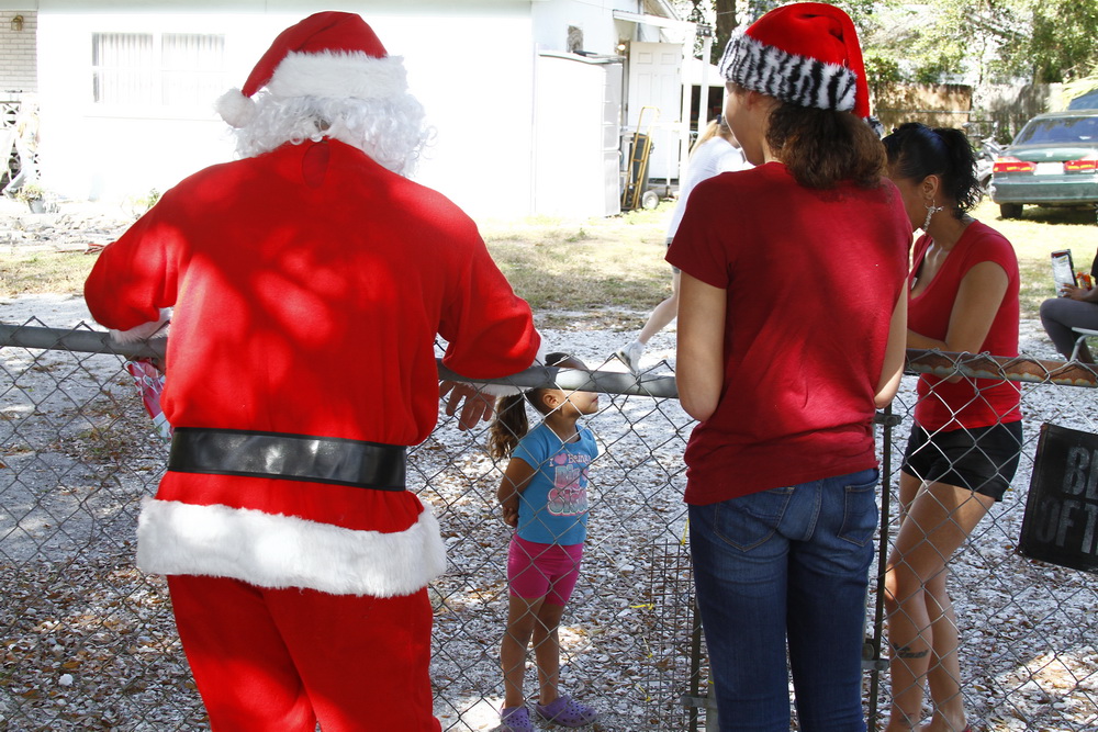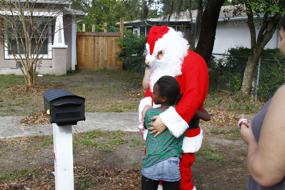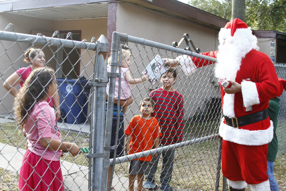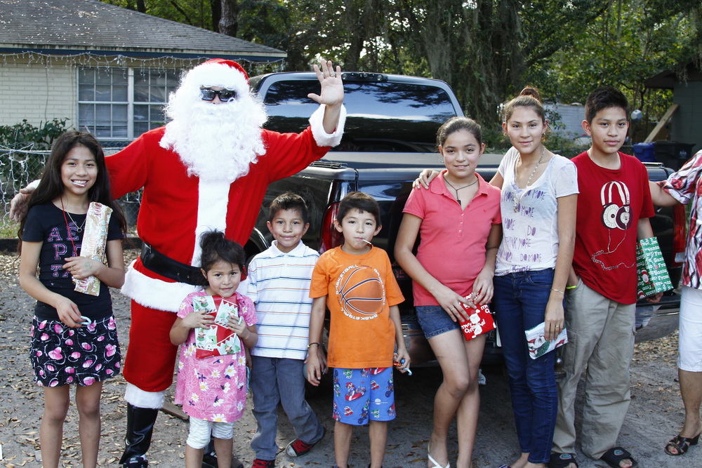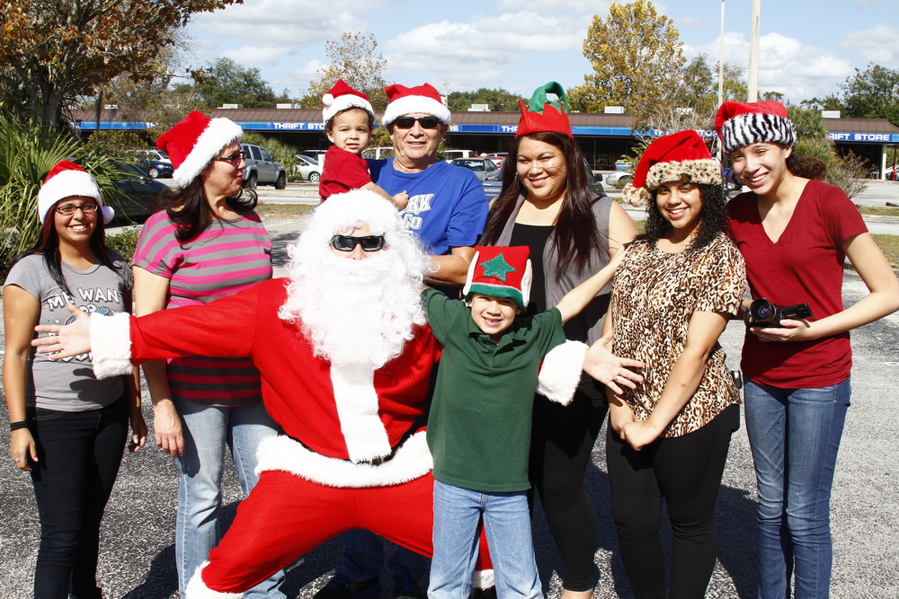 About 4 years ago we decided to buy some toys on clearance, wrap them and drive around the old neighborhood and pass them out. After two years of doing that I decided to put on a Santa costume and drive around handing out toys, then Santana Claus was born!