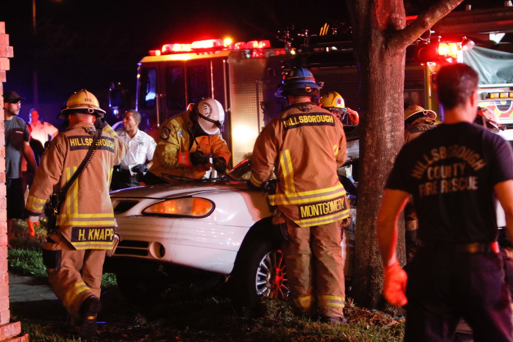 On our way back home I heard the Fire Rescue dispatcher dispatch E-7, my ears perked up because I just passed their station 10 seconds prior to the callout. The dispatcher proceeded to dispatch additional units including the Heavy Rescue Unit (HR-11) for a crash into a tree with entrapment, they also placed Aeromed, a medical helicopter on standby. This was a sign to me that this must be a serious crash. The dispatcher voiced the address. It was a location that I was familiar with as I have family in that neighborhood .